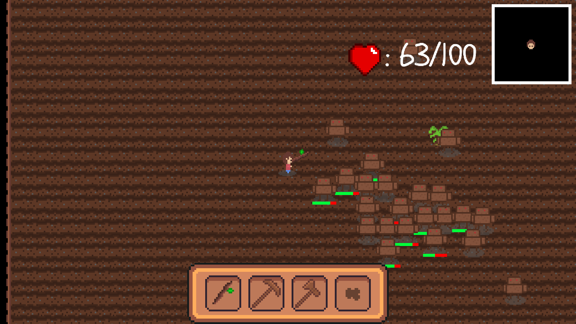 NOTE: There is currently a small bug where weapons appear to break objects and do no damage to them; when this happens, just move your cursor off of the object, stop swinging, and then go back to breaking.